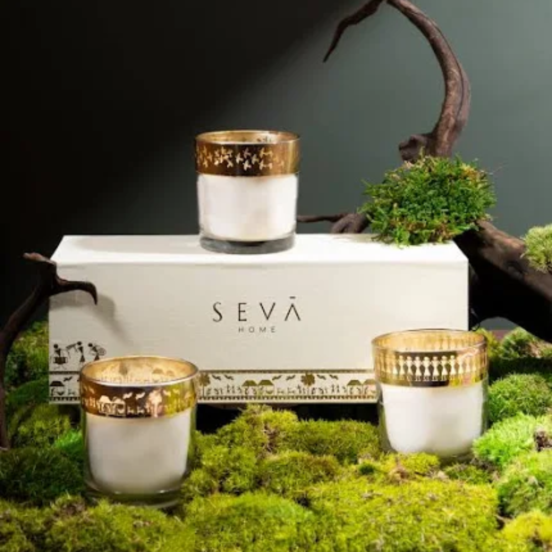 Relaxing scented candles in a decorative gift box.
